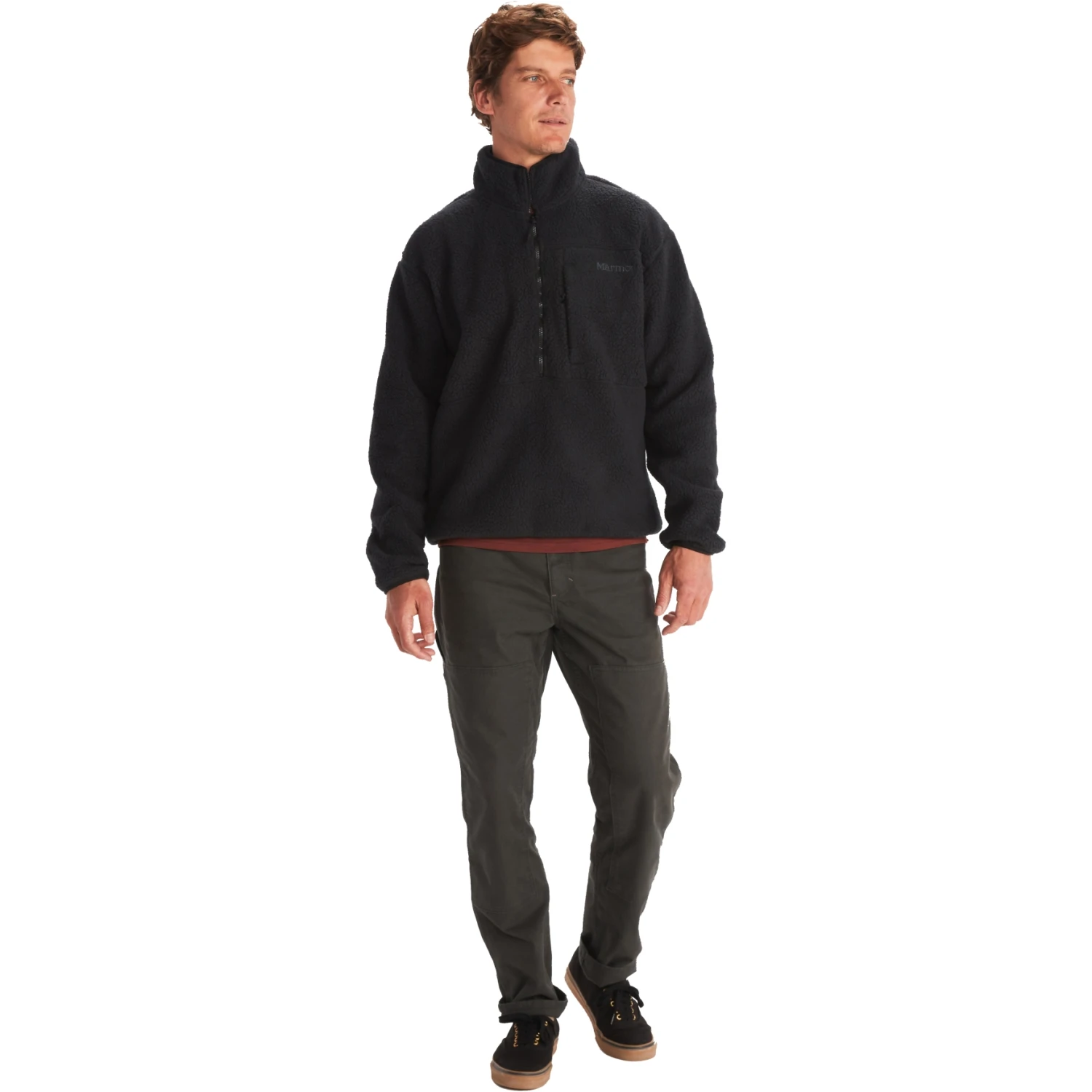Never-ending trails, fireside sessions, and bike rides in mountain-to-town style—the Men’s Aros 1/2-Zip Fleece can do it all! Pillowy-soft sherpa fleece made from recycled polyester will keep you warm and cozy on brisk days and nights at the dog park or the campsite. Pull it on as an extra-comfy midlayer on the slopes, or pair it with your most rugged denim jeans, comfiest sweatpants, or sportiest bottoms. This 1/2-zip jacket is a go-to stylish choice for casual, active, and everything in between.