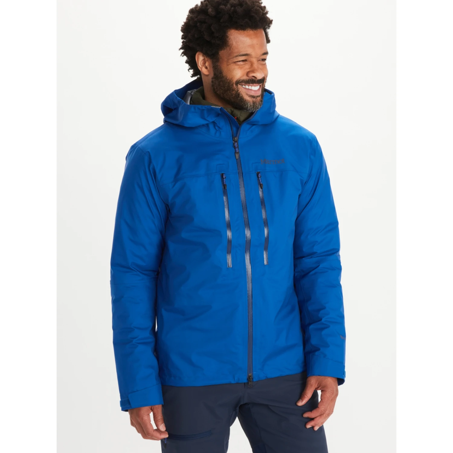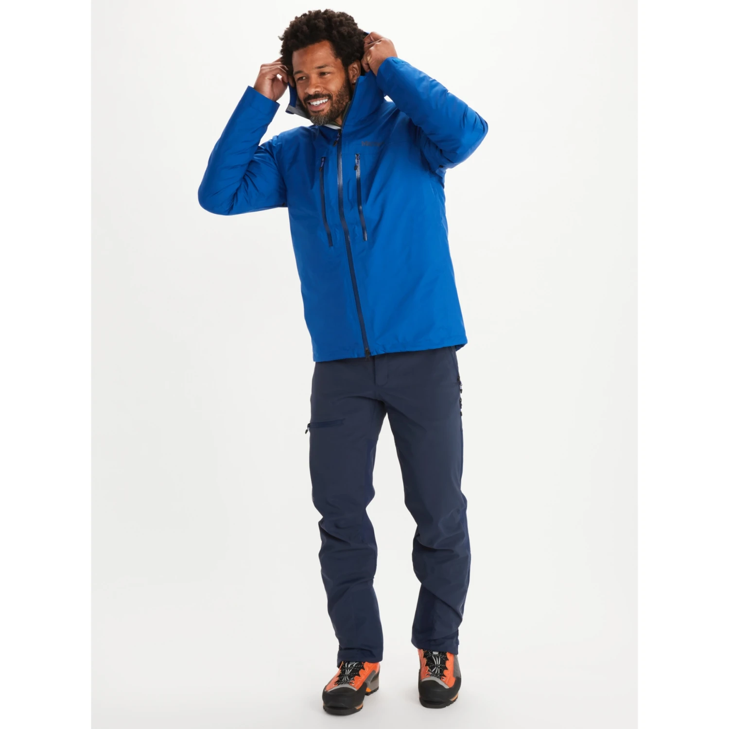 - Fixed helmet-compatible hood with peripheral cord adjustment for extra coverage