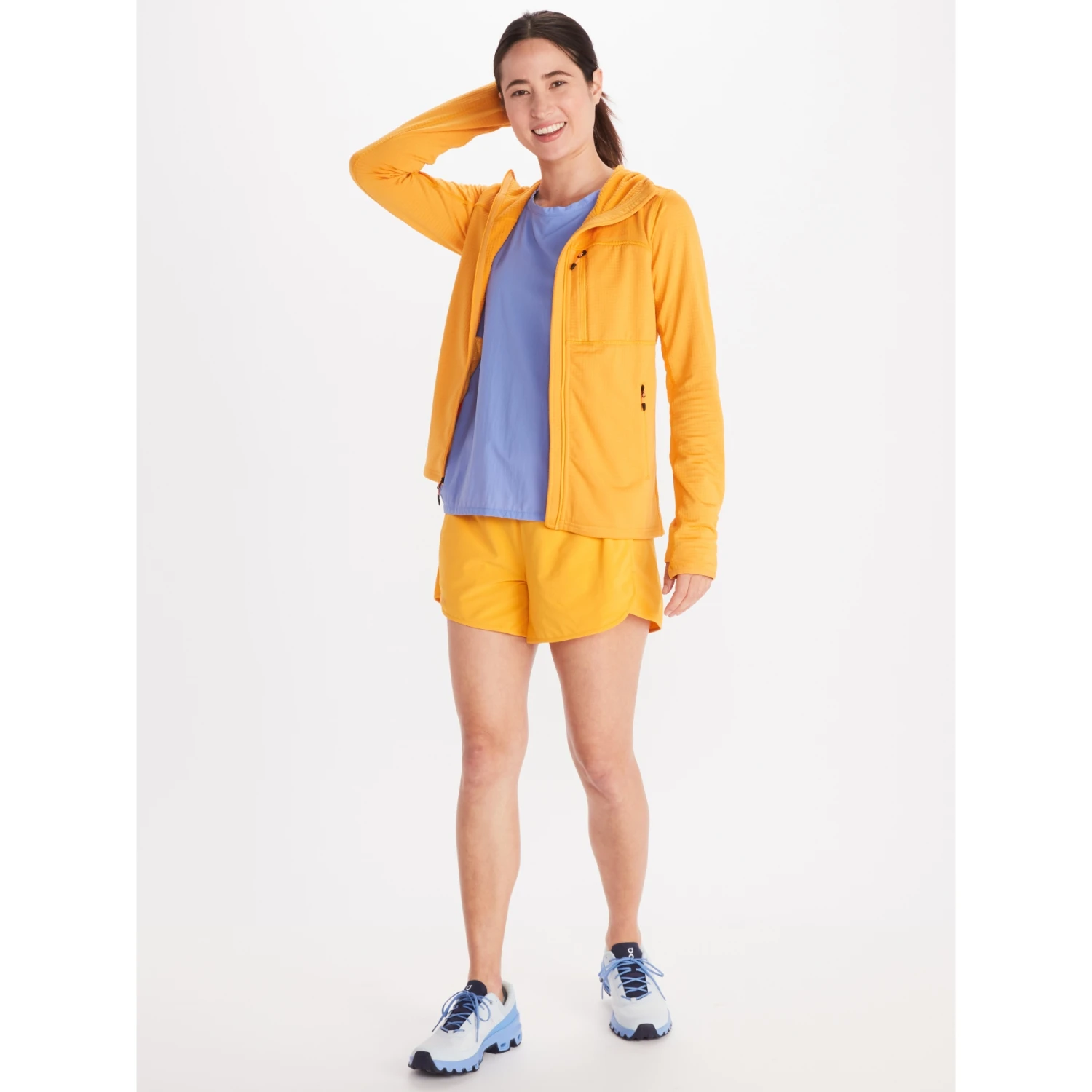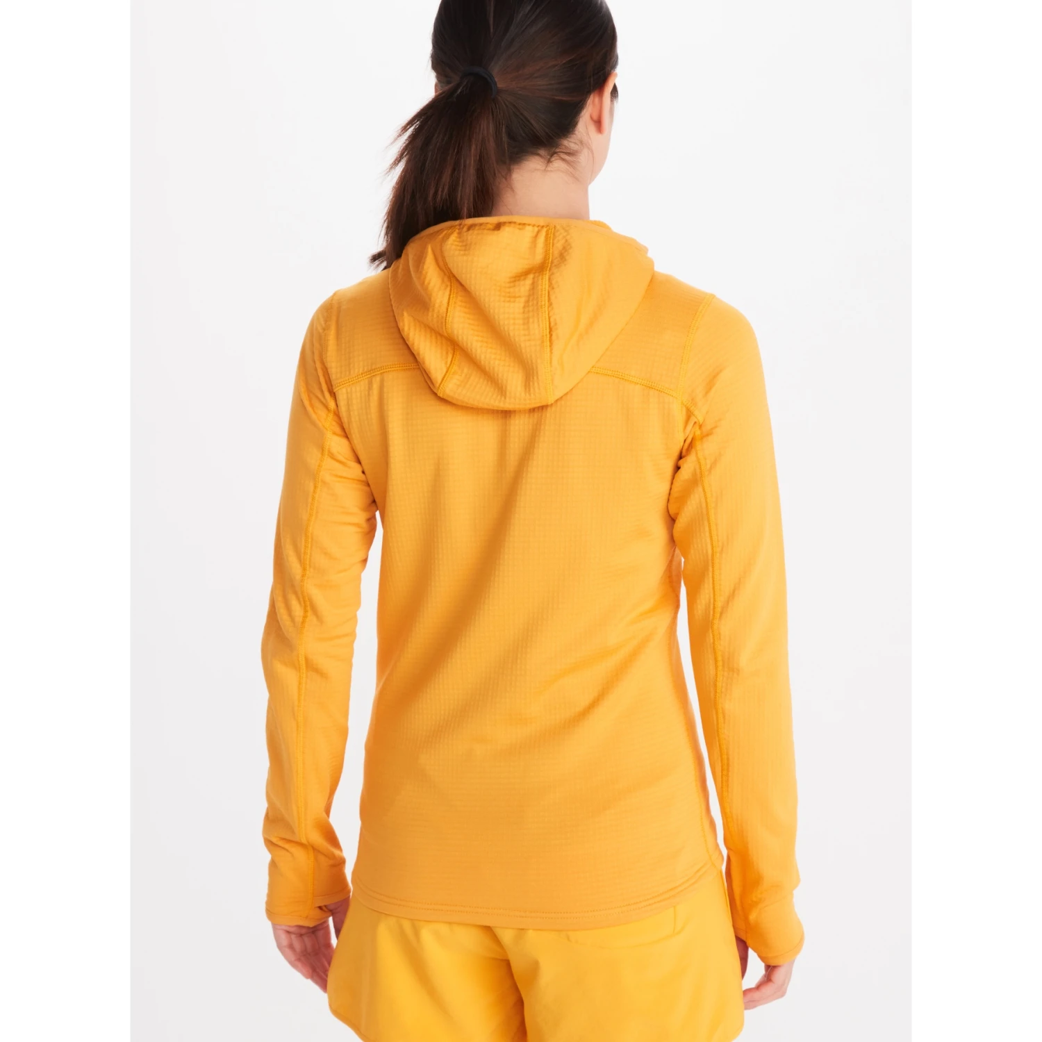 A lightweight grid fleece that helps manage heat and moisture when you’re going hard on the mountain. A tailored fit and thumbholes help the style move with your body, and the hood fits nicely under a helmet.
