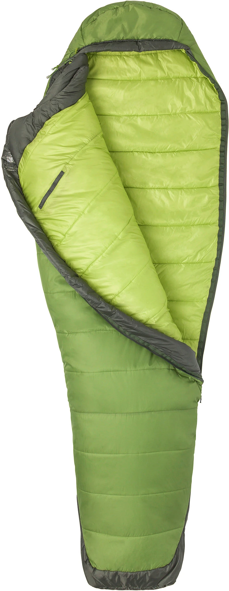Recycled Fabric, fully-featured sleeping bag of synthetic construction, confortable even in wet and cold climate.