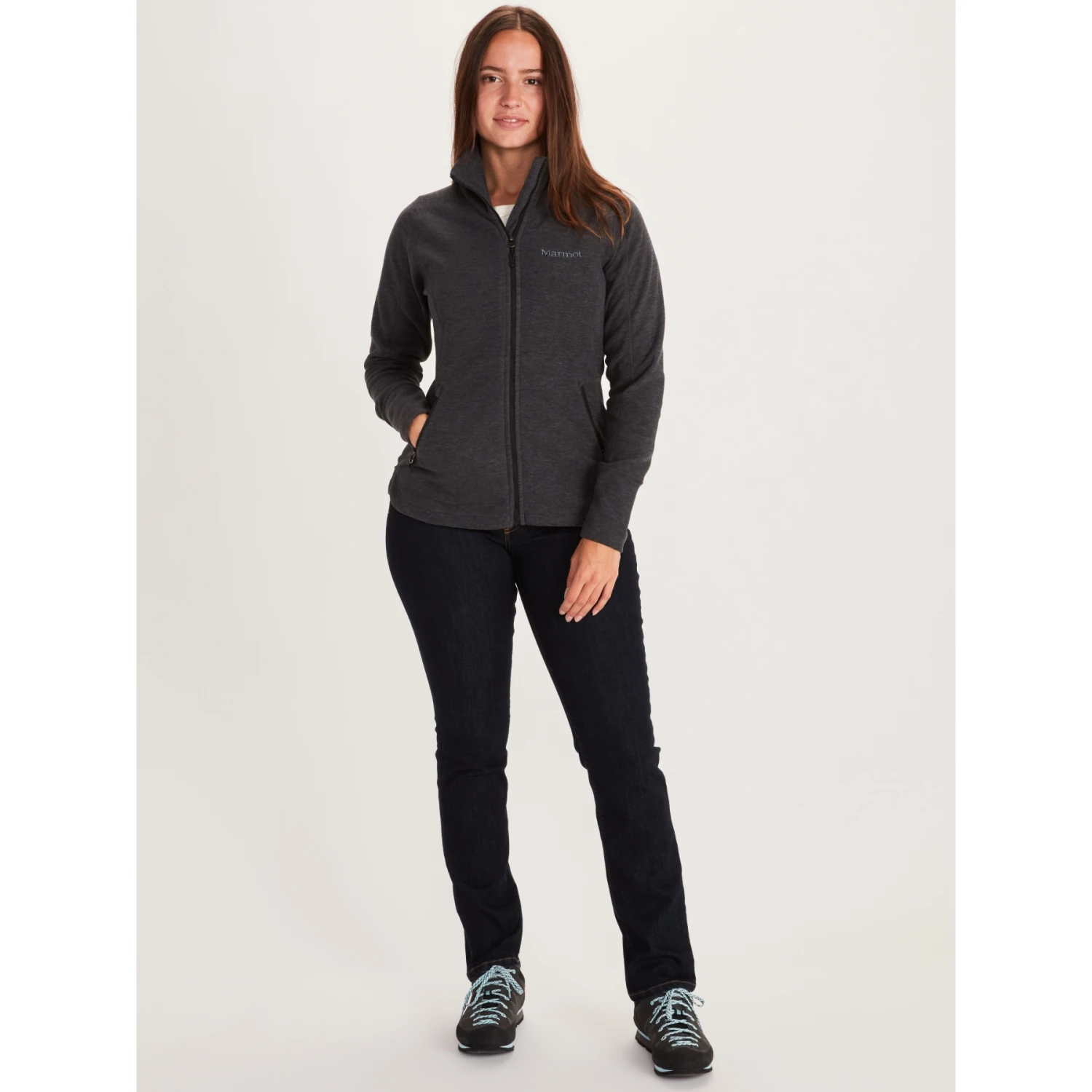 Add warmth to your early-morning starts on the trail or around town with the lightweight, water-resistant Women’s Pisgah Fleece Jacket. This velour zip-up fleece jacket is finished with a Marmot recycled DWR treatment, so you’ll be cozy and dry even if it starts to mist during your predawn prep. Handwarmer pockets and an internal zippered pocket keep the essentials safely stowed while the wind flap at the front adds protection against unexpected gusts. Angel-Wing Movement™ improves mobility when you’re reaching for the next point of the climb.